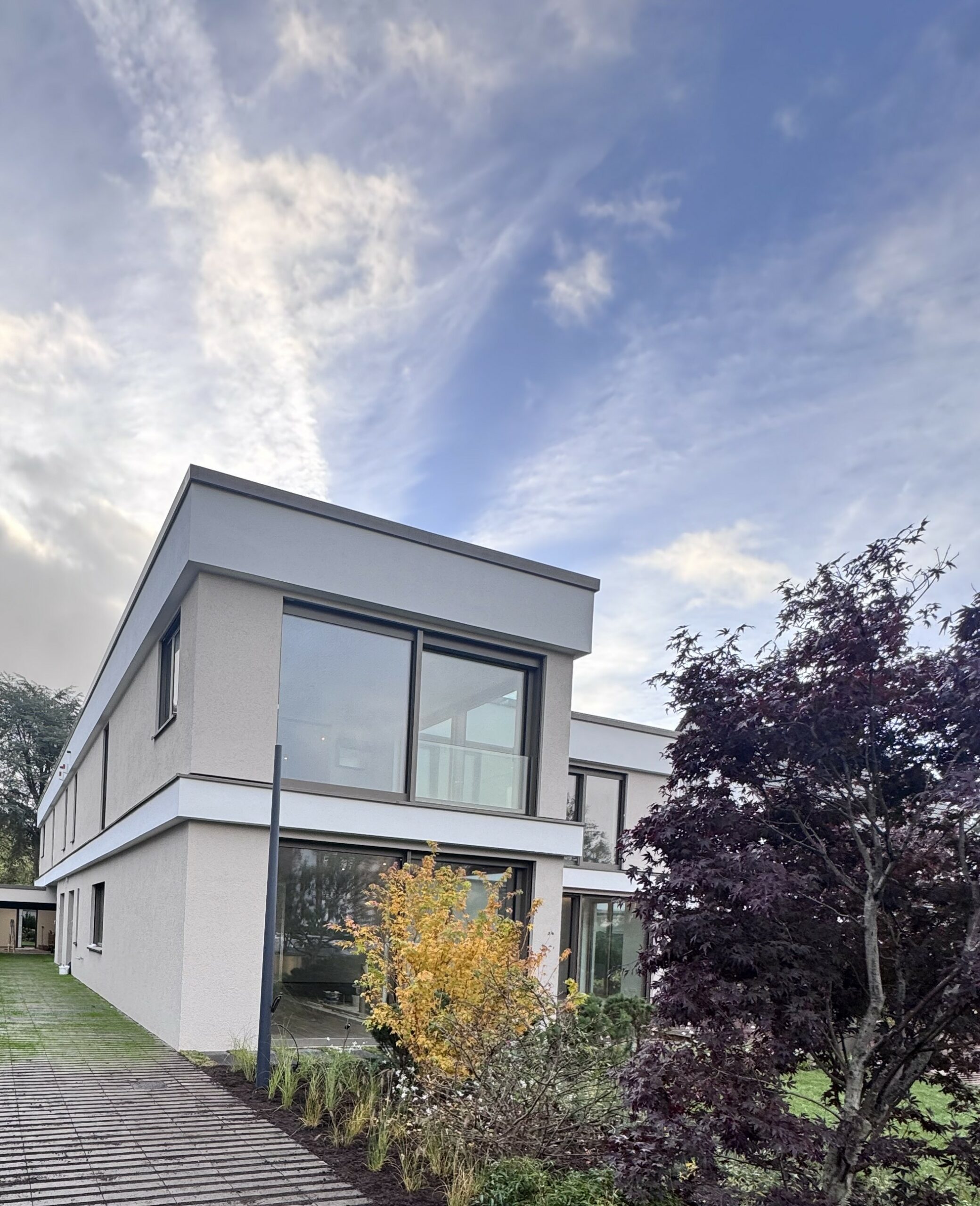 Wir realisieren exklusive Wohnprojekte auf höchstem Niveau – und diese schlüsselfertige Villa mit zwei Wohneinheiten im Rheinland (NRW) ist ist ein eindrucksvolles Beispiel dafür.